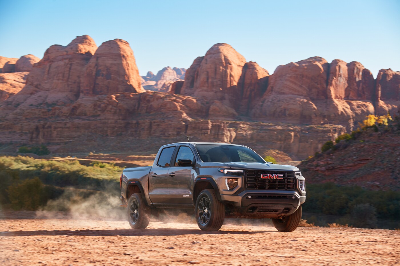 Find the Canyon with a turbocharged 2.7-liter I-4 engine, delivering an impressive 310 horsepower and 430 pound-feet of torque. This powerhouse comes with either rear-wheel drive or all-wheel drive. You can confidently take on rough terrain and adverse weather conditions.