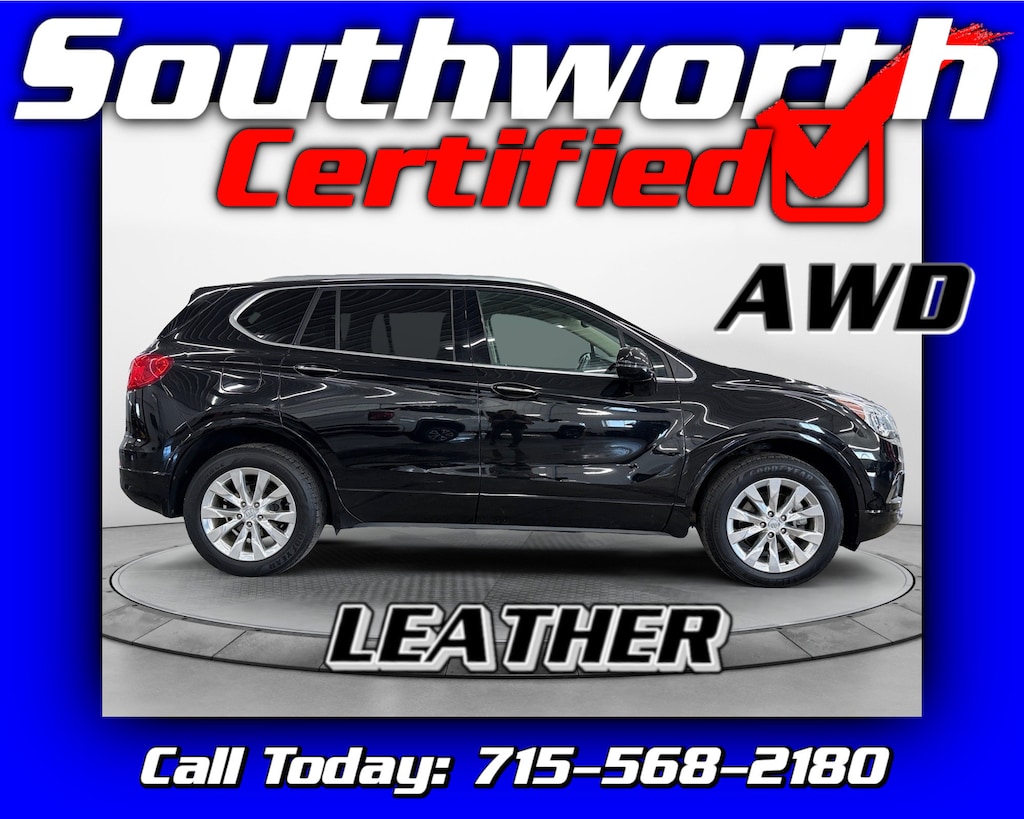 Enjoy luxury and all-weather confidence in this 2017 Buick Envision Essence AWD, powered by a 2.5L I4 engine. This one-owner SUV offers heated leather seats, passive entry, blind zone monitoring, and remote start for comfort and convenience. With a Southworth Certified inspection, complete professional detailing, and a fresh oil change, this Envision is ready to drive. Call 715-568-2180 today to schedule your test drive and experience the perfect combination of style, safety, and performance.
