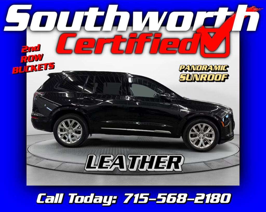 This 2020 Cadillac XT6 AWD Sport is a refined and capable luxury SUV powered by a 3.6L V6 and equipped with all-wheel drive for confident performance in all conditions. It features a clean CARFAX and a spacious 6-passenger configuration with second-row captain's chairs for added comfort. Premium amenities include heated and cooled leather seats, a heated steering wheel, panoramic sunroof, built-in navigation, Apple CarPlay, and Android Auto. Advanced safety technologies such as forward collision alert, lane keep assist, and blind zone monitoring provide peace of mind on every drive. This XT6 has passed the Southworth Certified Inspection, received a fresh oil change, and has been fully detailed and ready for its next owner. Call us today to come see it at 715-568-2180.