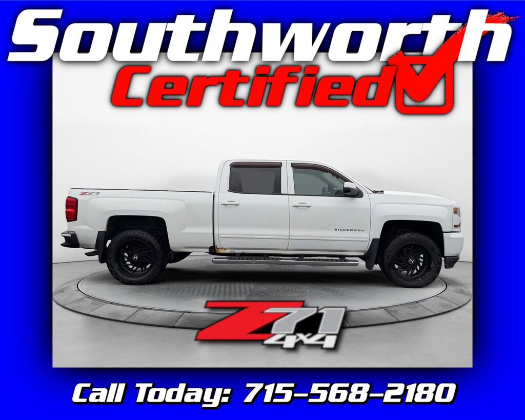 This 2016 Chevy Silverado 1500 LT is a well-equipped truck that delivers the power, comfort, and capability drivers appreciate. Powered by the dependable 5.3L V8 and paired with four-wheel drive, it's ready for daily work, weekend projects, and everything in between. This Silverado comes outfitted with a durable bedliner, aftermarket aluminum wheels that give it a sharp, upgraded look, a tow package with trailer brake controller, and heated seats for added comfort in colder weather. It has completed our Southworth Certified Inspection and arrives freshly serviced with a new oil change and a complete professional detail, making it fully prepared for its next owner. Call us today at 715-568-2180 to come see it in person.