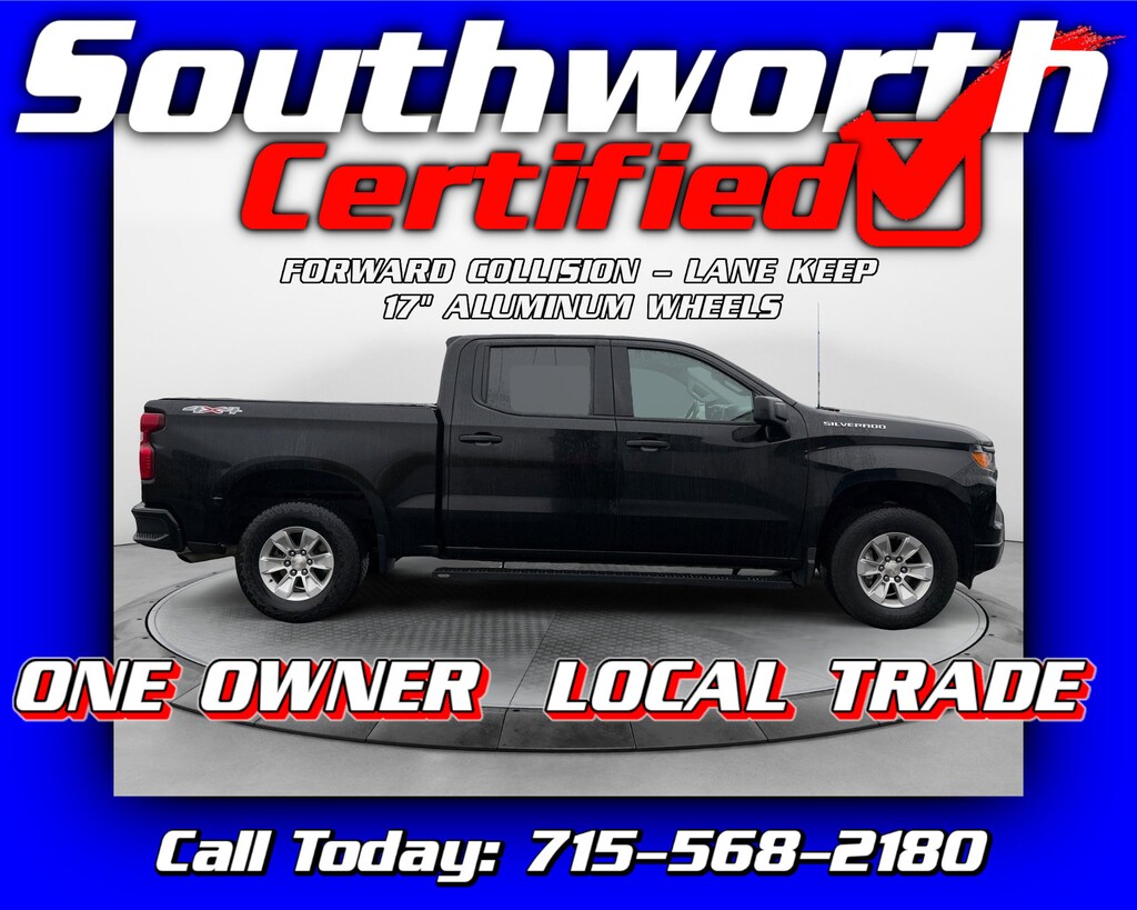 At Southworth, we're proud to offer this 2022 Chevrolet Silverado 1500 Work Truck, a locally owned, clean CARFAX vehicle that has been thoroughly inspected and Southworth Certified for your peace of mind. This well-equipped 4WD truck features a 2.7L engine, tow package, backup camera, advanced safety technologies like forward collision alert and lane keep assist, plus added conveniences including cruise control, aluminum wheels, and a bed cover. It has received a fresh oil change and a complete professional detail, ensuring it's fully prepared for its next owner. Call us today at 715-568-2180 to schedule your visit and experience the Southworth difference.
