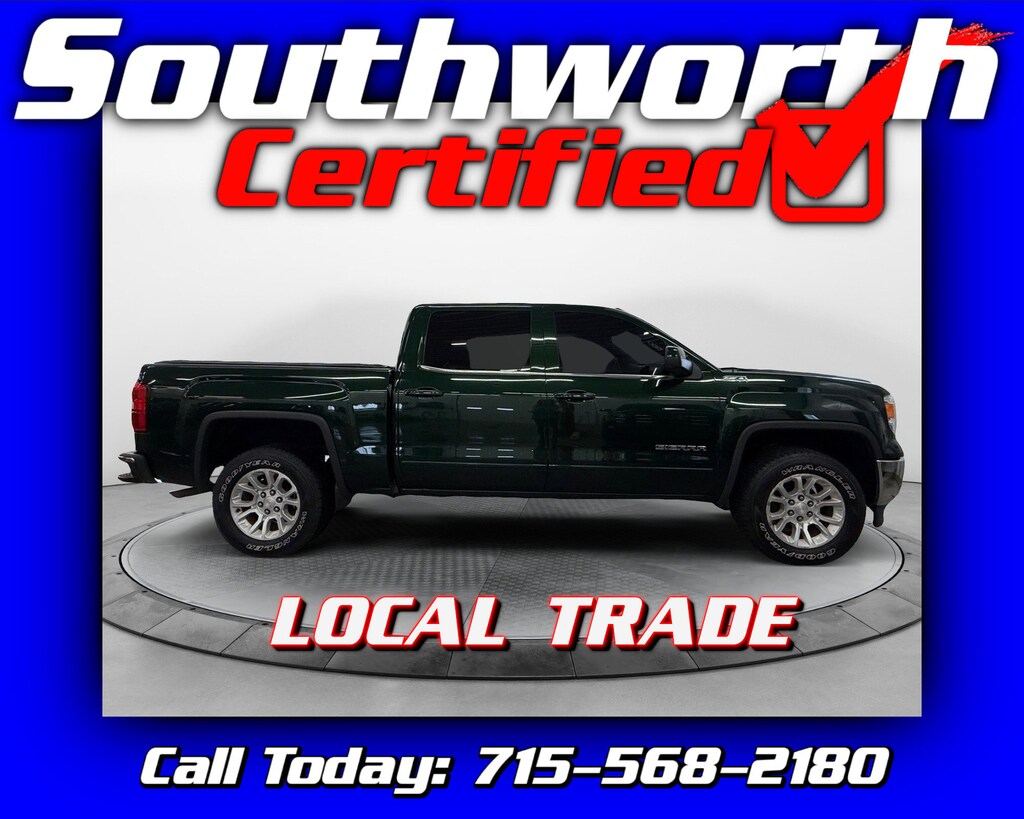 Check out this well-equipped 2015 GMC Sierra 1500 SLE, a local trade with a clean Carfax and the powerful 5.3L V8 paired with four-wheel drive for dependable performance in any condition. This Sierra comes loaded with great features, including navigation, heated seats, remote start, a poly bedliner, bed cover, and a tow package with trailer brake, making it ready for both work and weekend adventures. It has been fully serviced with a Southworth Certified Inspection, fresh oil change, and complete detail for your peace of mind. Call us today at 715-568-2180 to come see it in person!