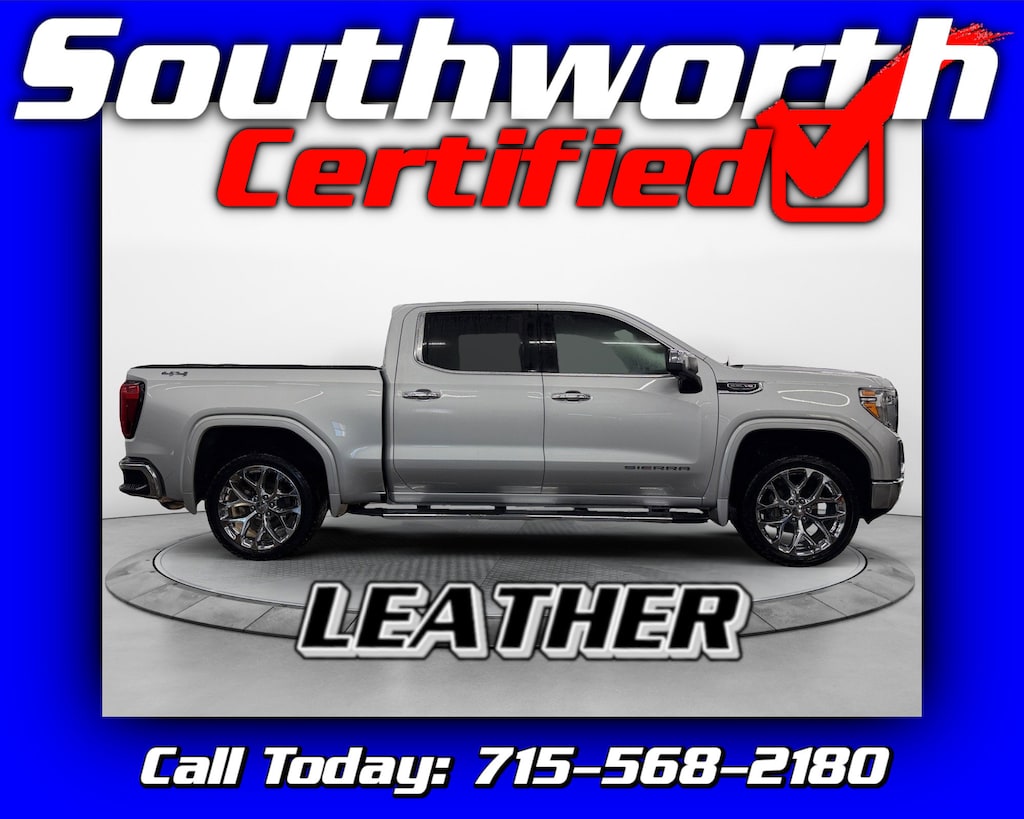 This 2019 GMC Sierra 1500 SLT delivers premium comfort and strong capability with its 5.3L V8 engine and four-wheel drive, making it an excellent choice for both daily driving and towing. It features a Clean Carfax and is loaded with technology including Apple CarPlay, Android Auto, and built-in navigation. The leather interior offers heated and cooled front seats, while advanced safety features such as forward collision alert, lane keep assist, and blind zone monitoring provide added confidence on the road. This Sierra is well equipped for work with the innovative MultiPro tailgate, tow package with trailer brake controller, bed liner, and bed cover. It has passed a Southworth Certified Inspection, received a fresh oil change, and been professionally detailed, making it ready for its next owner. Call us today to come see it in person at 715-568-2180.