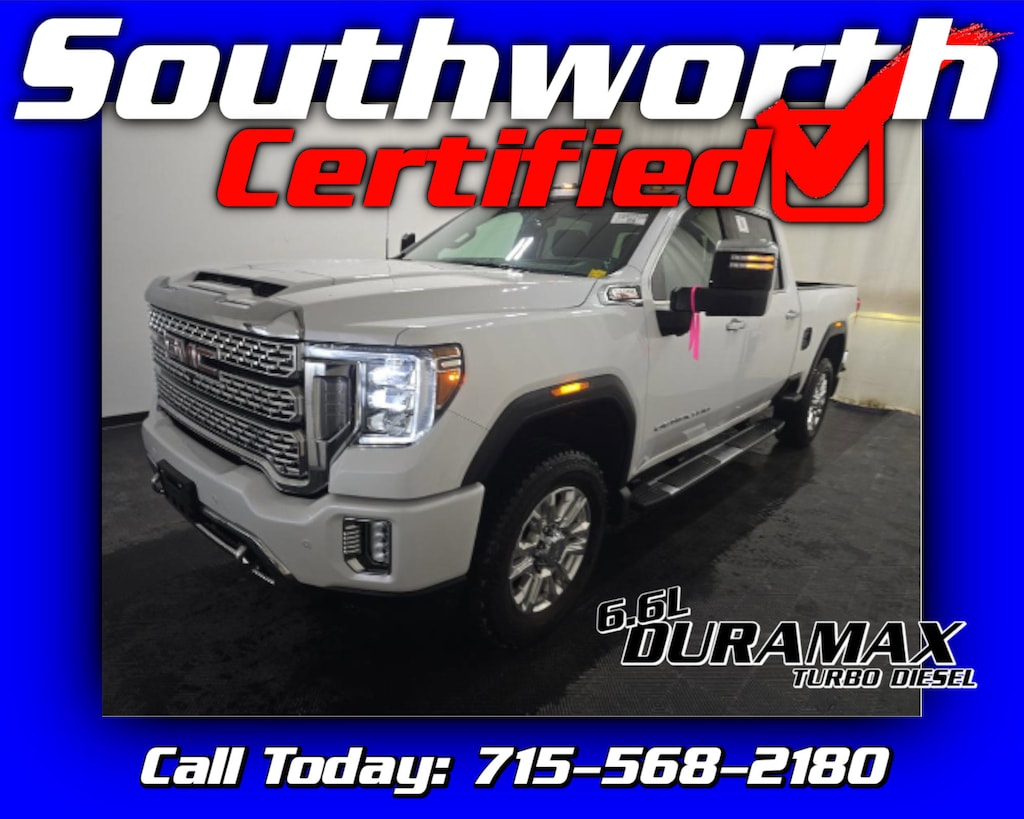 This 2021 GMC Sierra 3500HD Denali Ultimate is powered by the legendary 6.6L Duramax Turbo Diesel with 4WD and a full tow package, making it equally capable for work or luxury travel. It comes fully loaded with the Denali Ultimate Package, gooseneck/5th wheel prep, snow plow prep, power sunroof, rear camera mirror, head-up display, heated and ventilated leather seating, Bose premium audio, navigation, MultiPro tailgate, spray-in bedliner, and 20" polished aluminum wheels. Safety and driver-assist features include forward collision alert, lane departure warning, and blind zone alert. This truck has a Clean Carfax, has passed our Southworth Certified Inspection, received a fresh oil change, and a complete professional detail. Call today to schedule your test drive.